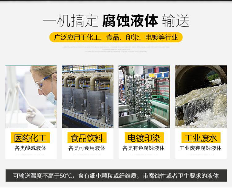 泵材質(zhì),采用無毒、無污染,增強(qiáng)聚丙烯RPP(適用溫度-14℃~100℃)、ABS、UPVC第一次性注塑成型。