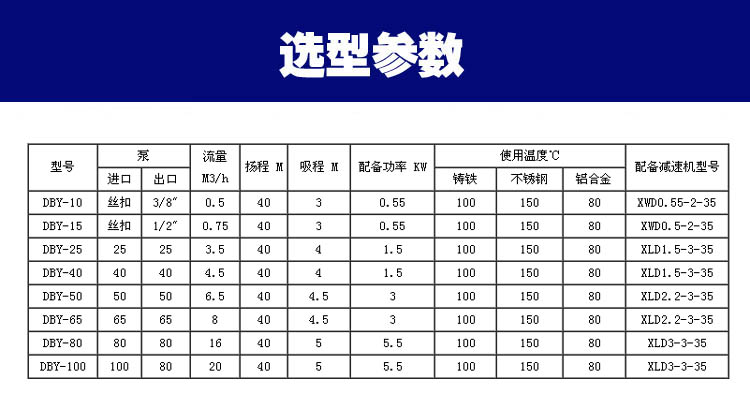 DBY型電動隔膜泵應(yīng)用于石化、陶瓷、冶金等行業(yè),這種泵的主要特點(diǎn)是不需灌引水、自吸能力達(dá)7米以上。直徑在10毫米以下的顆粒、泥漿等均可以毫不費(fèi)力地通過。由于隔膜將被輸送介質(zhì)和傳動機(jī)械件分開,所以介質(zhì)絕對不會向外泄漏,且泵本身無軸封,使用壽命大大延長。根據(jù)不同介質(zhì),隔膜分為氯醇橡膠、氟橡膠、丁晴橡膠等,完全可以滿足不同用戶的要求。