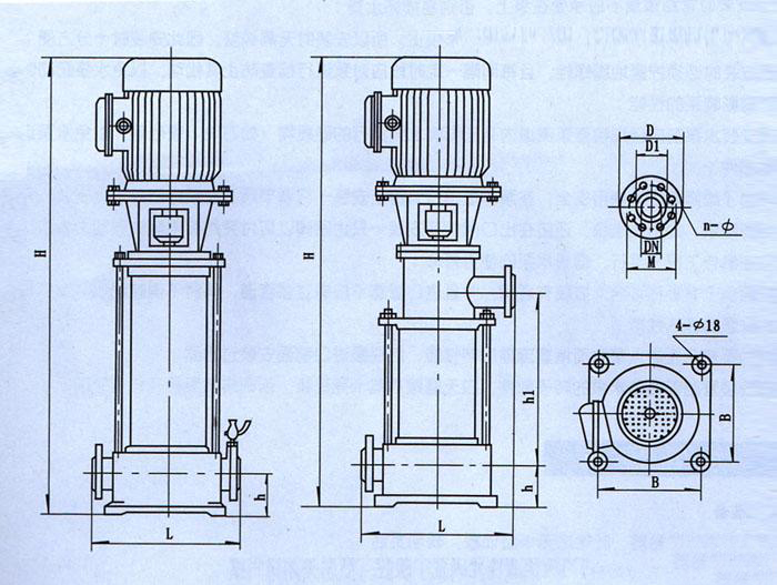 GDL型立式多級(jí)管道離心泵安裝尺寸圖: